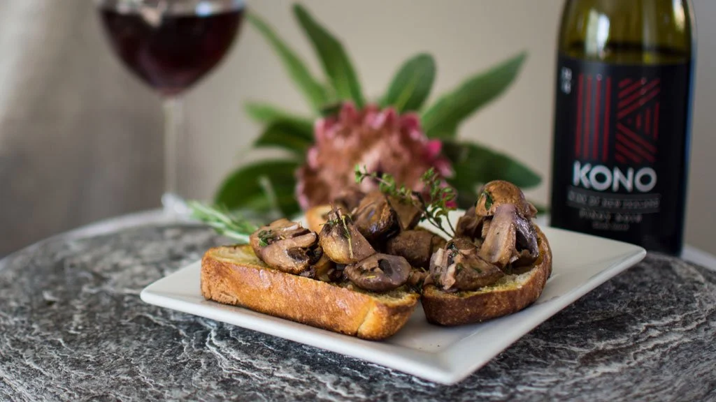 KONO WINES PINOT NOIR PAIRED WITH MUSHROOM CROSTINI